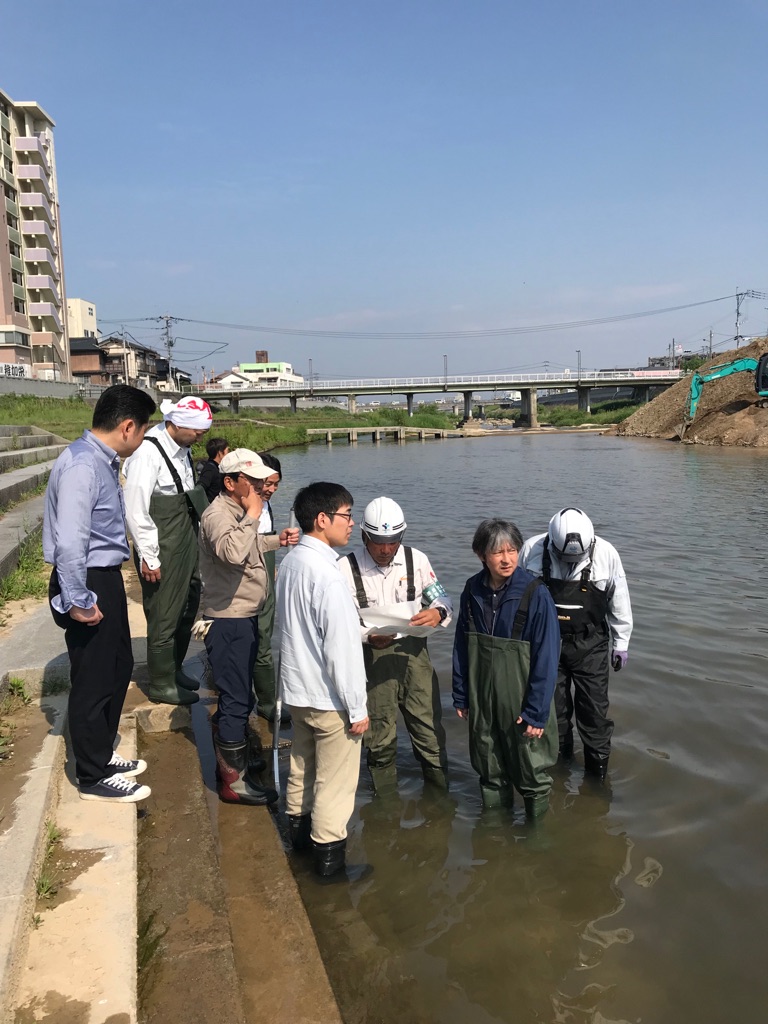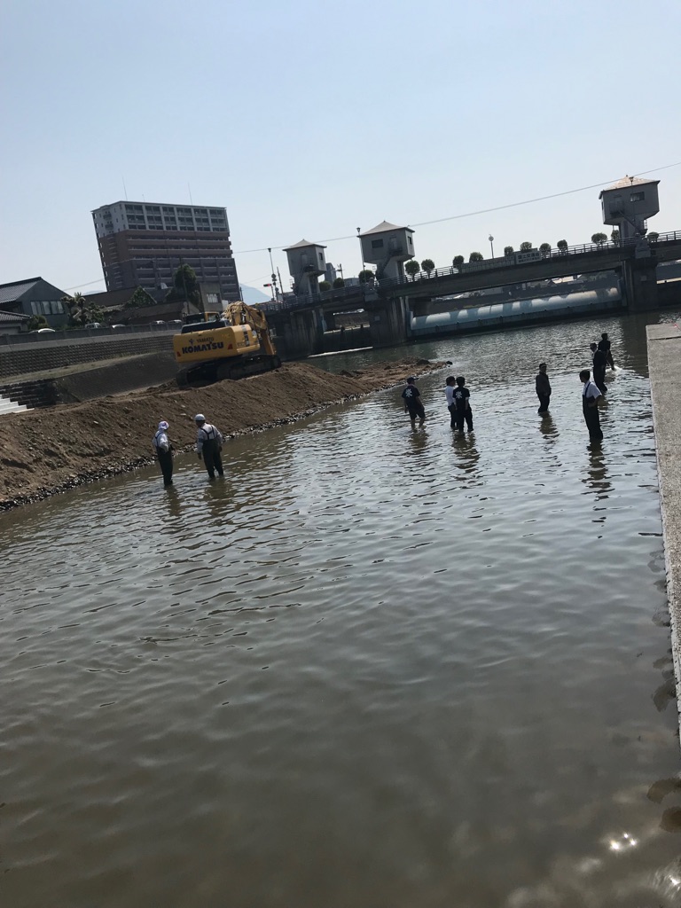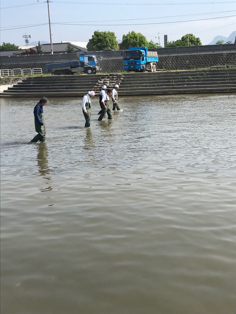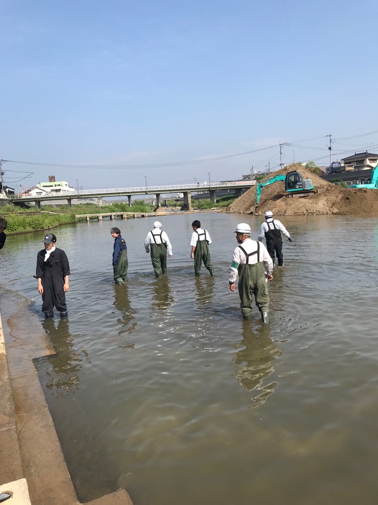 河川事務所立会いの下、彦山川の川底点検を行いました。